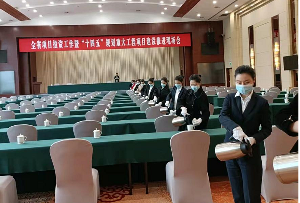 近日,省委、省政府在眉山岷江东湖饭店召开全省项目投资工作暨”十四五”规划重大项目建设推进会,应岷江东湖饭店邀请,商贸旅游系10名酒店管理与数字化运营专业学生参加会议服务工作。