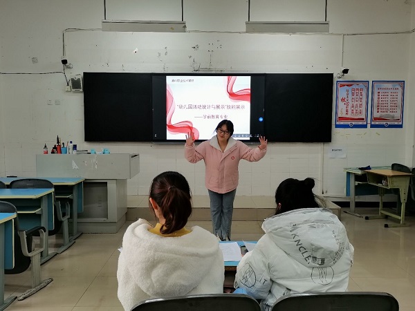 为夯实学生技能训练,以训促学,以展促练, 12月22日下午,师范教育系小学教育、学前教育教研室分别在一教学楼和五教底楼开展2021年秋季学期技能训练部展示活动,系主任张雪艳、系党总支书记傅进平、系副主任王其红及部分专业教师观摩了展示活动。