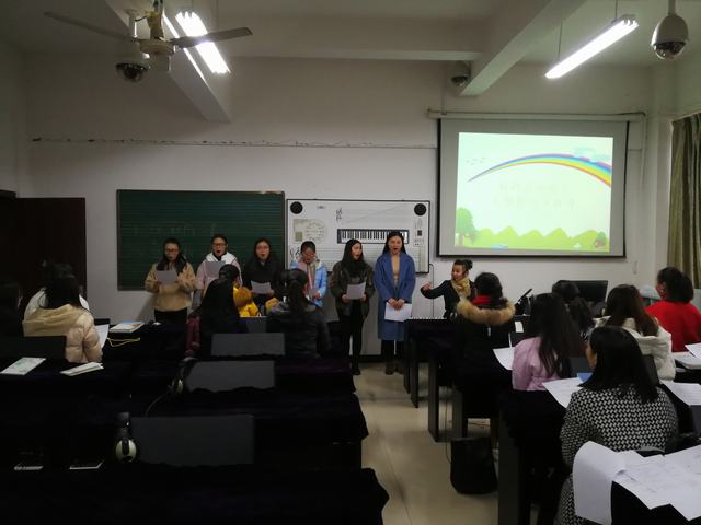 2017年12月29日(星期五)第3节课,师范教育系黎卫老师在艺术中心111教室上了教改公开课,教学课题为《声乐》课程中的“开口音咬字吐字演唱法”。 黎卫老师以歌曲《大海啊,故乡》为教学载体,紧扣开口音咬字、吐字演唱技巧设计与组织教学,课前学生搜集演唱视频、课堂通过常规发声准备、演唱视频找错、师生纠错、领悟练习、演唱歌曲系列活动实施教学。本次课无论是教学文本设计质量、教师组织和引导学生的能力,还是学生活动的广度与深度、教学目标的生成性等都具有较好的示范性,值得学习借鉴。1、教学设计质量较高。本次课教学目标设定准确,重难点确定清楚,教学活动具体、教学环节层次清晰、循序渐进,充分体现“做中学”的教改思路。2、新课引入自然、高效。教师播放《大海啊,故乡》演唱视频,让学生找演唱问题的方式导入咬字吐字教学,导入自然,创建鲜明的问题情景,迅速营造主题探究氛围,引入效率高。3、教学能力突出,练习与纠错、指导与示范和谐融为一体。教师善于提问,能引发全体学生积极思考,教师始终站在组织引导和促进者角度组织课堂教学,引导学生在找错、纠错、练习中领悟发声技巧;围绕发声技巧问题,教师组织了找错与示范、练习与纠错、展示与指导活动,组织的体验活动循序渐进,过程清晰流畅,体现教师丰富的教学经验;教师专业功底扎实,能敏锐发现学生练习中的问题,借“打开盒子”比喻发声,形象生动,反馈及时,针对性强,指导效果好。4、学生体验充分,目标的生成性较高。整堂课从学生发现问题、到探究解决问题,学生始终处于较兴奋的学习状态,处于具体任务或活动的体验之中,学生在体验、领悟中逐渐形成经验,学生活动的广度与深度较高,目标的生成较为自然,有一定建构意义。建议:课堂最后的总结可放手让学生自己归纳开口音咬字吐字的知识与演唱技巧,学生收获会更多。