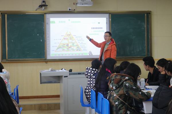 2016年12月13日(星期二)第四节课,师范教育系小学教育教研室伍鹏老师在1502教室上了一堂教改公开课,教学课题是《自然科学基础》课程的“合理的膳食”。作为一名转型教师,伍鹏老师迈出了艰难的第一步,有几点做得较好:1、制作的PPT较精美,图片、视频、文字有机组合,色彩的选用恰当,较好地起到教学辅助手段的作用;2、师生关系融洽,从课上师生的合作情况来看,教师的语言、眼神、动作等以及学生对教师的亲切均呈现出在平常的教学中和谐的师生关系,较活跃和轻松的课堂气氛,学生活动和回答问题较为积极,教者营造的课堂气氛较为轻松,有一定的喜感。建议:1、《自然科学基础》这门课程涉及的专业知识面广且有一定的深度,要上好这门课程,应加强专业理论的学习,特别是自己本专业之外而课程涉及别的专业领域的理论知识的学习;2、在教学中注意知识讲授的严谨性和科学性。