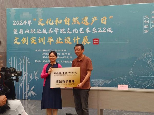5月29日,文化艺术系与彭山区文化馆成功举行校企合作暨“遗趣非凡•文创新篇”文创展活动。彭山区文广旅局局长胡凤翔参加活动。文化艺术系余莲君与彭山区文化馆(美术馆)何伟共同签署了校企合作协议,并为眉山职业技术学院实践教学基地揭牌。