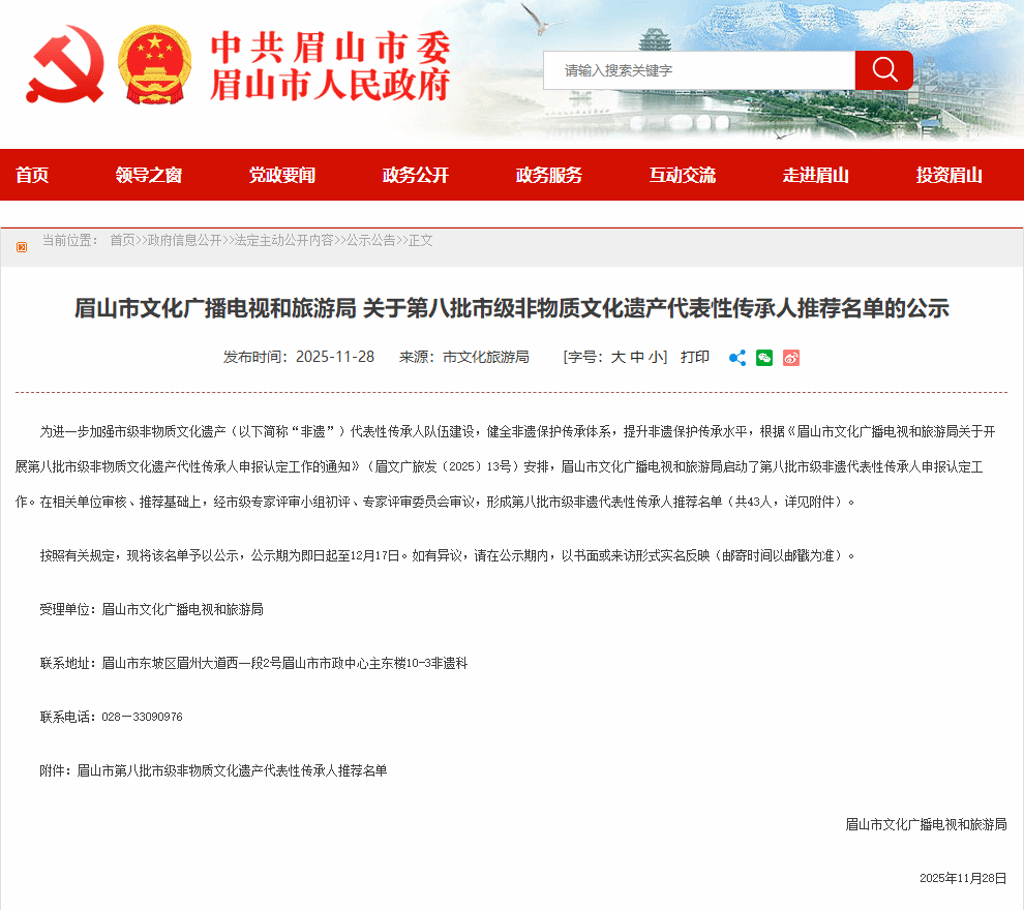 近日,眉山市文化广播电视和旅游局公布第八批市级非物质文化遗产代表性传承人推荐名单,我校特聘教师吴长清成功入选,传承项目为东坡肘子制作技艺。