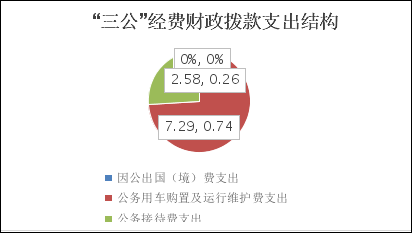 2024年度“三公”经费财政拨款支出决算中,因公出国(境)费支出决算0万元;公务用车购置及运行维护费支出决算7.29万元,占73.86%;公务接待费支出决算2.58万元,占26.14%。具体情况如下: