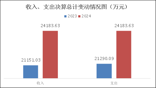 2024年度收入、支出总计均为24183.63万元。与2023年度相比,收入、支出总计各增加3032.6万元,增长14.34%、增加2893.54万元,增长13.21%。主要变动原因是我校办学规模持续扩大,生均拨款稳定保障。