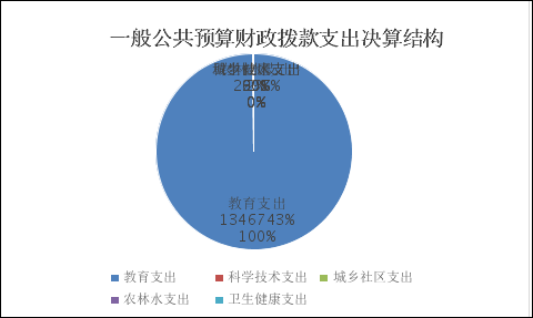 2024年度一般公共预算财政拨款支出13467.43万元,主要用于以下方面:教育支出13443.77万元,占98.82%;科学技术支出22.05万元,占0.16%;城乡社区支出0.02万元,占0.005%;农林水支出0.99万元,占0.01%;卫生健康支出0.6万元,占0.005%。