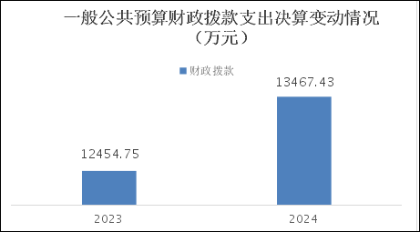 2024年度财政拨款收入、支出总计均为13467.43万元。与2023年度相比,财政拨款收入总计、支出总计各增加1012.68万元,增长8.13%。主要变动原因是我校办学规模持续扩大,人数增加,故拨款总额增加。