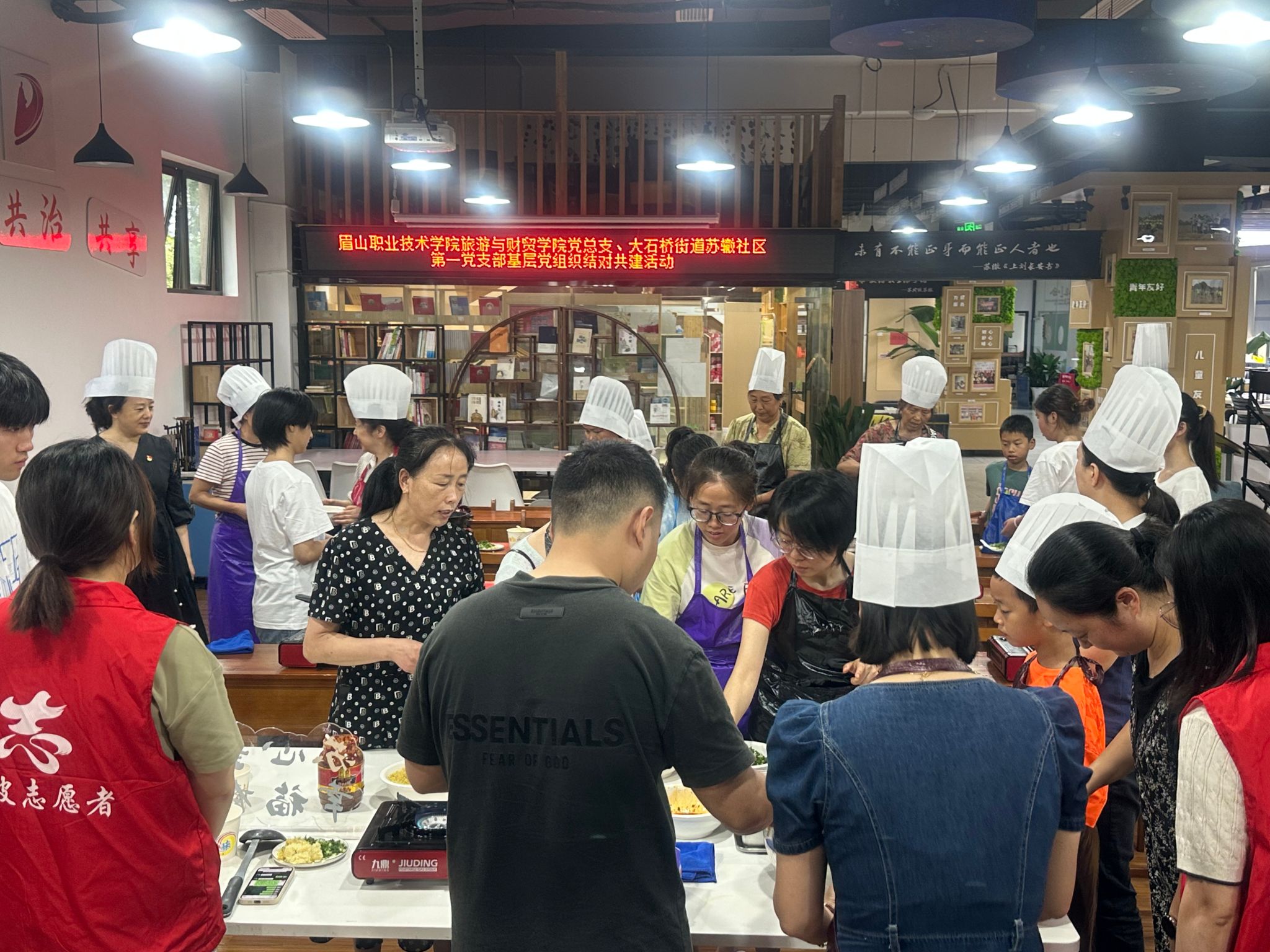 活动中,我院党总支书记袁娇围绕学院党建工作作整体介绍,重点讲述了省级高校党建工作标杆院系建设成果,详细介绍了学院在党建与专业协同发展、党员实践教育基地建设、志愿服务品牌打造等方面的具体举措和成效,强调了校地党建共建对提升人才培养质量和服务地方发展的重要意义。苏辙社区第一党支部书记袁媛系统解读了社区党建工作布局,包括党员网格化管理模式、民生服务精准化推进机制、社区文化活动品牌打造等内容,分享了在社区治理中发挥党组织引领作用、凝聚多方力量解决群众难题的典型案例。随后,双方党员代表围绕“校地党建融合路径”“专业资源服务社区”“传统文化传承创新”等议题展开深入研讨,就发挥高校师资优势开展社区技能培训、组织大学生党员参与社区志愿服务、联合打造家风建设实践平台等达成共识。结对后,双方结合社区群众需求,联合开展了“烹饪东坡味共筑文明家”和“寻味东坡・点茶传韵”东坡非遗主题活动。以沉浸式体验激发了社区群众对东坡肘子、东坡点茶等东坡非遗文化的传承热情,推动了优良家风的培育与弘扬。