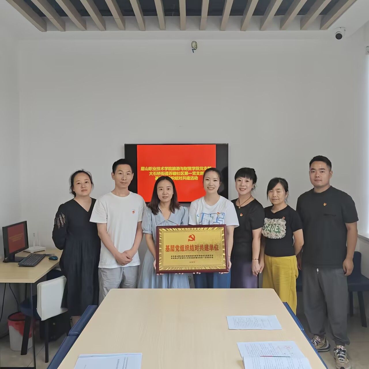 7月3日,旅游与财贸学院党总支与东坡区大石桥街道苏辙社区第一党支部在苏辙社区2楼会议室开展基层党组织结对共建活动,双方党员代表参加活动。