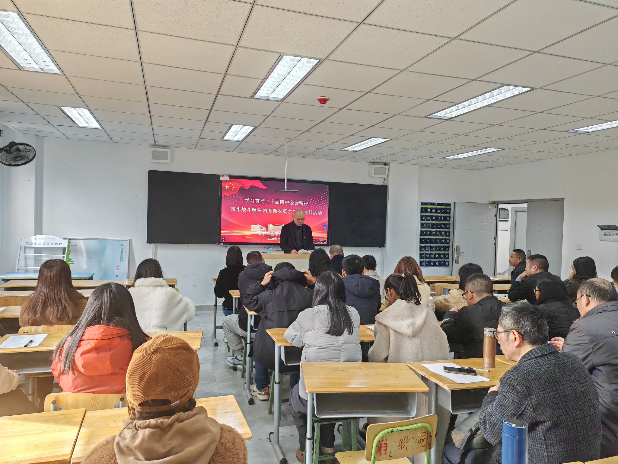 党总支书记杜宗洪带领全体党员学习了党的二十届四中全会精神。结合涉农职业教育的实际,深入阐释了加强党对教育事业全面领导的极端重要性。他强调,基层党组织必须成为坚强有力的“战斗堡垒”,要把党的领导贯穿于办学治院、教书育人全过程,为培养知农爱农新型人才提供坚强的政治和组织保证。