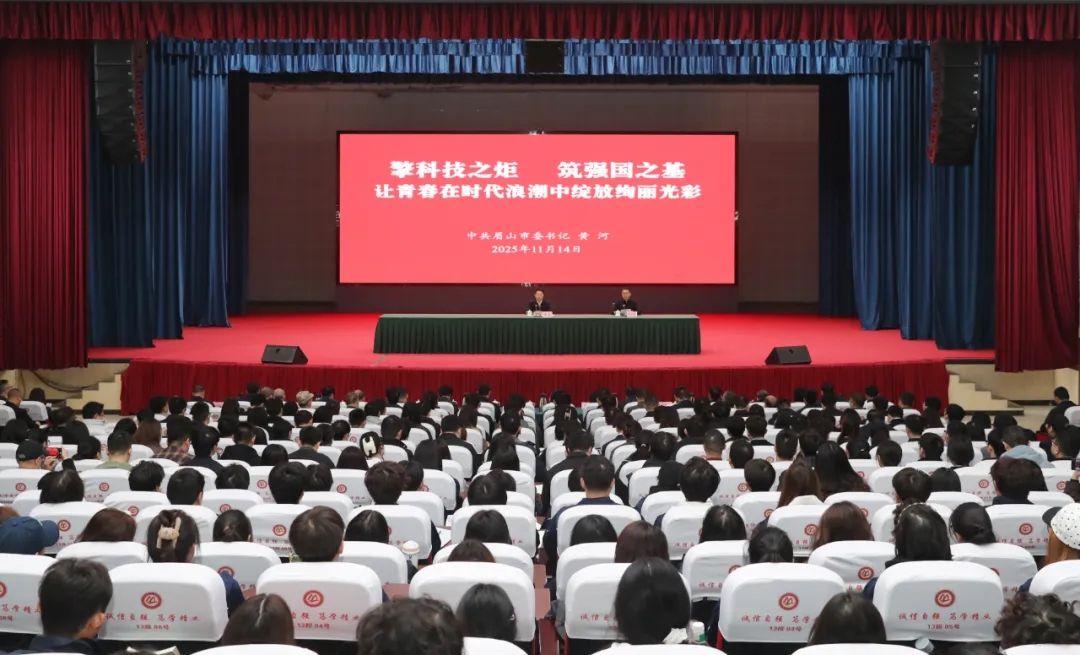 11月14日,市委书记黄河前往眉山职业技术学院,宣讲党的二十届四中全会精神,为在眉高校师生作形势政策报告。他强调,要深入学习贯彻党的二十届四中全会精神和习近平总书记对四川工作系列重要指示精神,认真落实立德树人根本任务,激励广大师生擎科技之炬、筑强国之基,让青春在时代浪潮中绽放绚丽光彩。