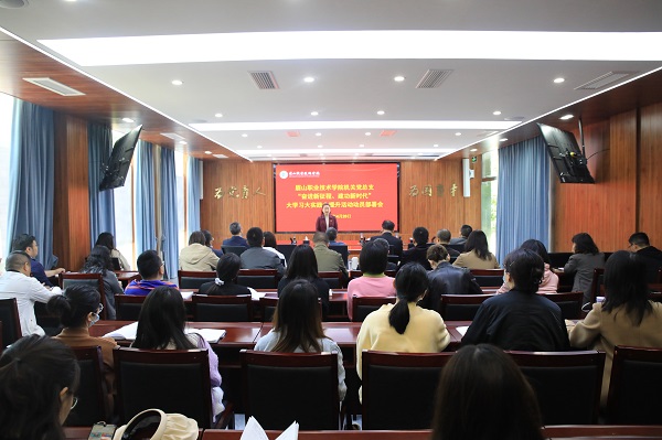 邓惠明传达学习了眉山市和学校“奋进新征程、建功新时代”大学习大实践大提升活动动员大会精神。她指出,开展好“大学习大实践大提升”活动,学习是基础、实践是关键、目的在提升,全体党员要切实提高政治站位,深刻认识活动的重大意义,认真贯彻落实市委和学校党委决策部署,切实把活动抓实抓好。