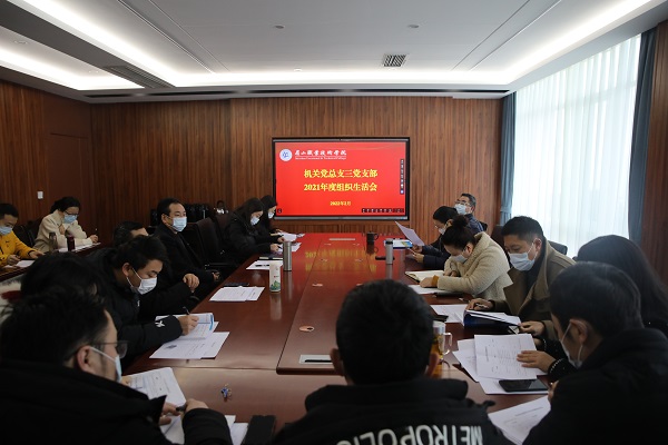 2月23日,机关党总支三党支部召开了2021年度组织生活会,会议由三党支部书记姜阳主持,学校机关党总支书记邓惠明参加会议并提出点评和指导意见。