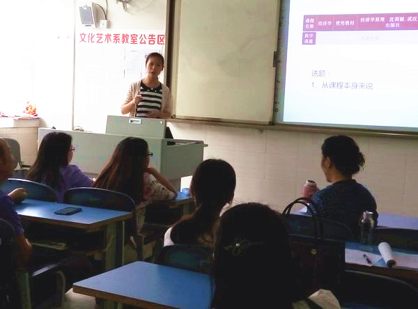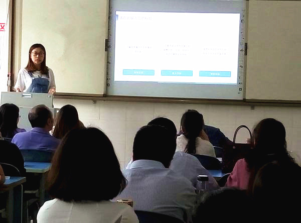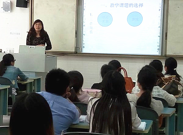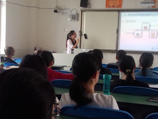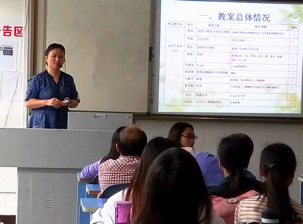 教案点评活动分为教案陈述、提问研讨、点评总结三个环节。金艳等12位教师结合ppt课件,从选题的背景、教学目标的设定、教学环节的设计等三个方面进行了陈述。青年教师接受了现场指导教师的提问,并围绕主题进行研讨。最后由郭静老师对全体青年教师教案中存在的问题逐一进行点评总结。