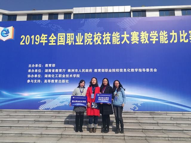 11月23日至25日,2019年全国职业院校技能大赛教学能力比赛现场决赛在湖南株洲举办。在比赛首次鼓励跨校联合组建教学团队参赛的新背景下,由我校朱冬梅和四川幼儿师范高等专科学校林学梅、李鹤艺、熊绘新共四名教师首次跨校联合组成大学英语教学团队,通过团结协作、优势互补,以参赛作品《< 新职业英语>第三模块Brand & Trade——扬民族品牌,拥爱国情怀》代表四川省参加此次比赛,经过激烈的角逐,获得高职组“公共基础课程组”二等奖的优异成绩。