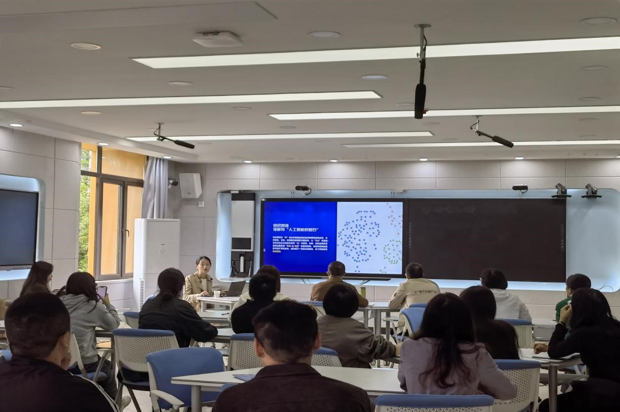 本次培训主要分为理论宣讲、实操应用两方面。培训开始,卓薇强调了知识图谱建设的重要性,阐述了知识图谱建设理论,介绍了平台功能,借助典型案例展示了如何围绕专业、课程开展知识图谱建设,并同与会教师进行互动交流。