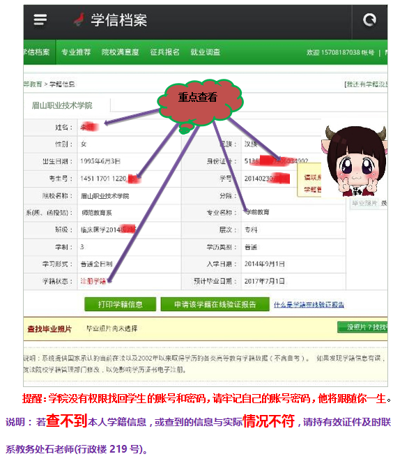 五、进校后更改姓名的同学暂不注册,先到教务处核对学籍信息。