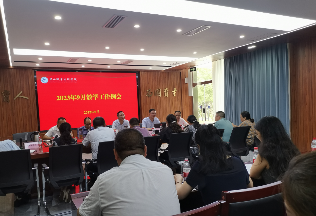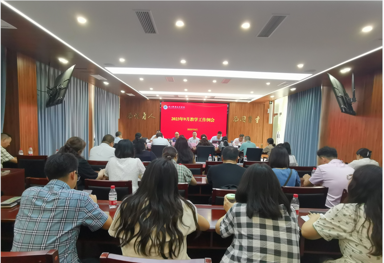 9月6日下午,在学校行政楼一楼会议室,学校召开了新学期第一次教学工作例会。副校长杨兴江、教学评价与督导中心主任罗树明、教务处处长杨光辉、各教学单位主任、副主任、教研室主任、教务处工作人员参加了会议,会议由教务处杨红兵副处长主持。