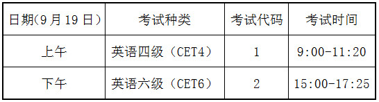 根据教育部考试中心有关安排,2020年上半年全国大学英语四、六级考试笔试(以下简称CET)第二次延考将于9月19日举行,我校没有开设口试科目。现将笔试报考事宜通知如下: