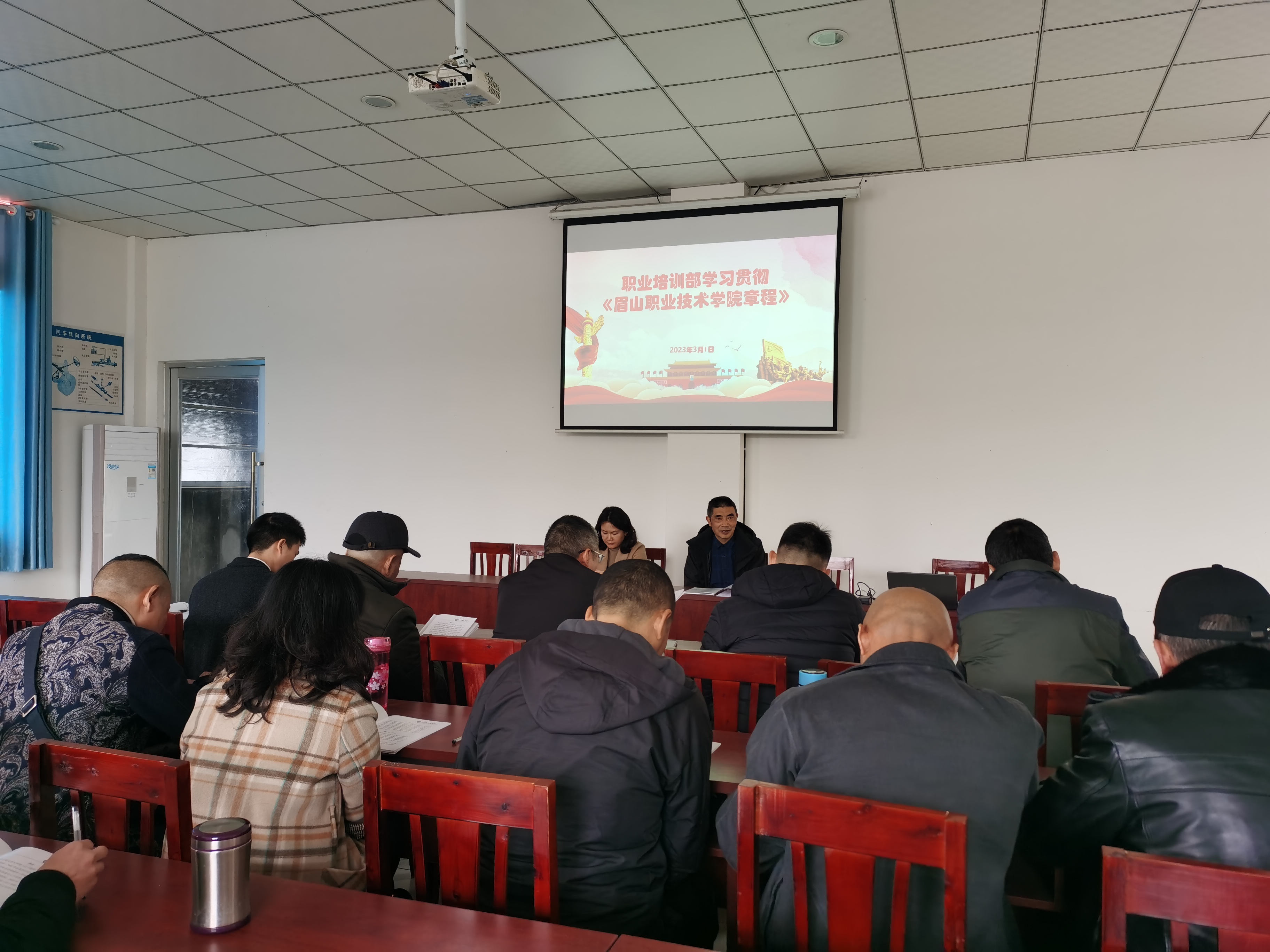 职业培训部根据《中共眉山职业技术学院委员会眉山职业技术学院关于学习宣传贯彻实施〈眉山职业技术学院章程〉的通知》工作要求,于3月1日,在高智远驾驶培训有限公司会议室召开集中学习会,深入细致地学习了《眉山职业技术学院章程》(以下简称“《章程》”)。学习会由职业培训部主任彭瑞清主持,职业培训部全体教职工参加。