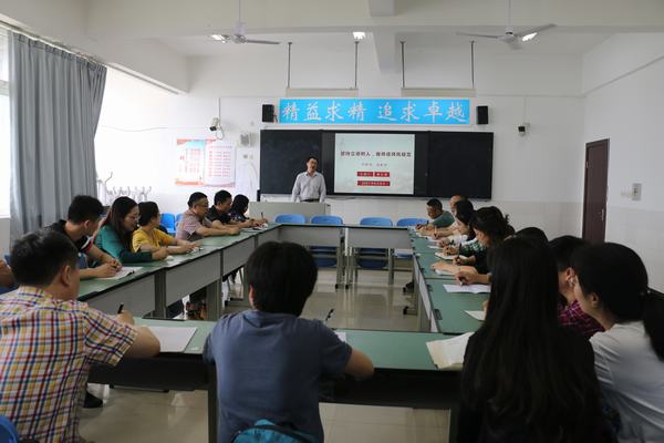 中职继教党总支宣传统战委员、继续教育培训部党支部书记黄文清以“坚持立德树人,做师德师风模范”为题为中职部、继续教育培训部全体教职工上了一堂师德师风专题讲座。