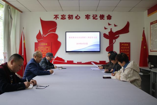 2019年4月2日,继续教育培训部在行政楼101室召开教职工理论学习会,会议由继续教育培训部主任黄文清主持。