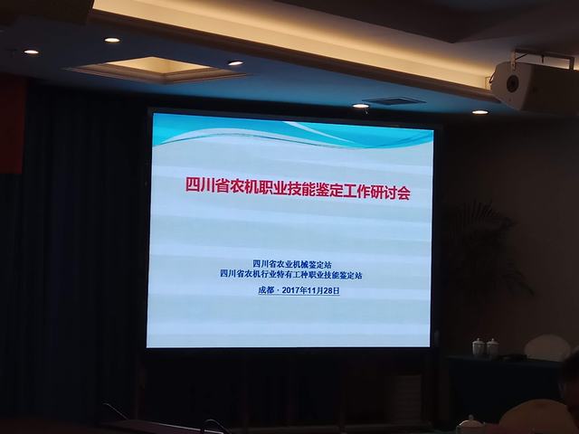 四川省农机职业技能鉴定工作研讨会于2017年11月28日在成都市郫都区丽天花园大酒店召开。此次研讨会由四川省农业机械鉴定站主办,来自全省21个地市州农业局(农机局)负责人、农机鉴定站负责人、农机企业代表和有关职业院校代表参加了会议。会议由省农业机械鉴定站书记李和平主持。我院职业技能鉴定站站长黄文清应邀参加了此次会议。