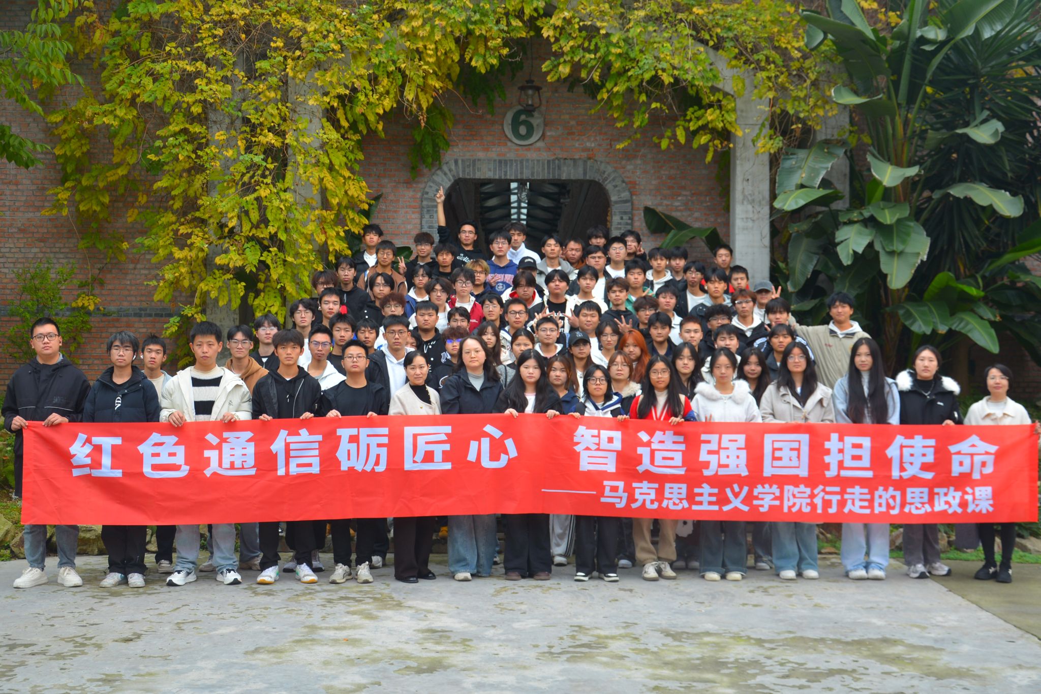为深入学习贯彻习近平新时代中国特色社会主义思想,深化思政课教学改革,11月12日,马克思主义学院组织智能制造学院近200名学生赴眉山市三苏镇四川电信国防教育基地B区,开展“红色通信砺匠心,智造强国担使命”主题实践活动,引导学生从红色历史中汲取力量,厚植爱国情怀。