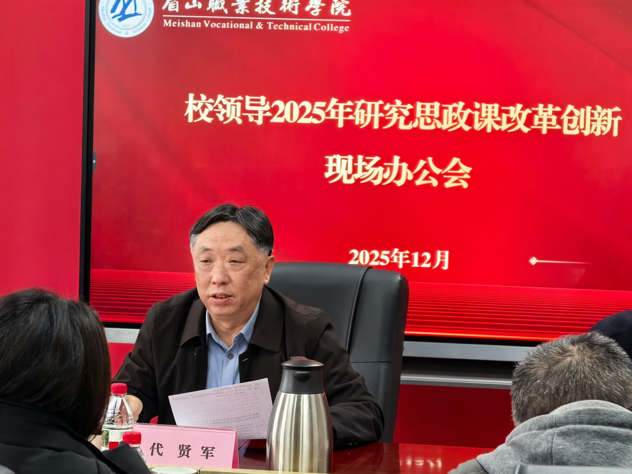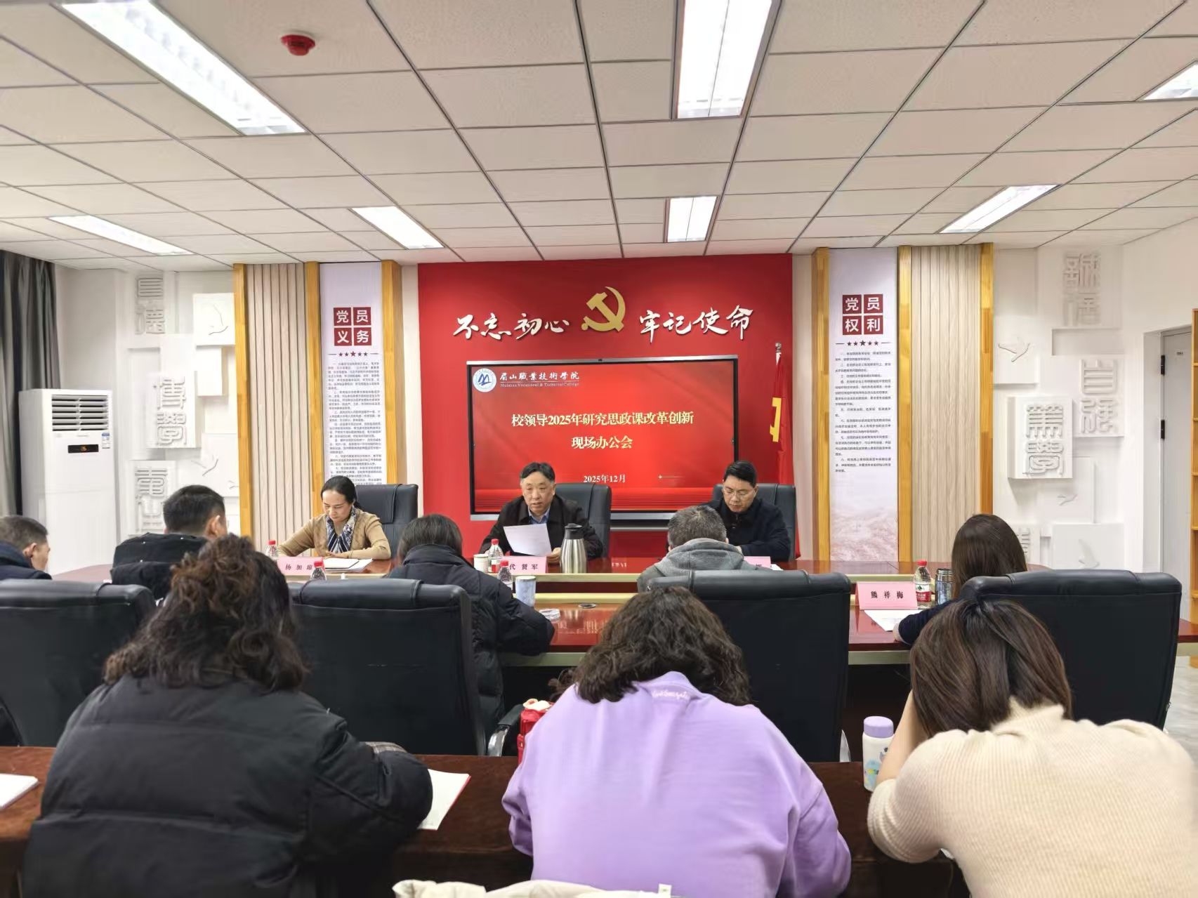为全面总结本年度思政课教学指导组工作成效,持续推动思政课改革创新,切实提升思政课建设质量与育人实效,12月22日,学校在第七教学楼303召开2025年度思政课教学指导组工作总结会暨思政课改革创新现场办公会。学校党委书记代贤军主持会议并讲话,党委副书记陈光辉,副校长杨加琼出席会议。