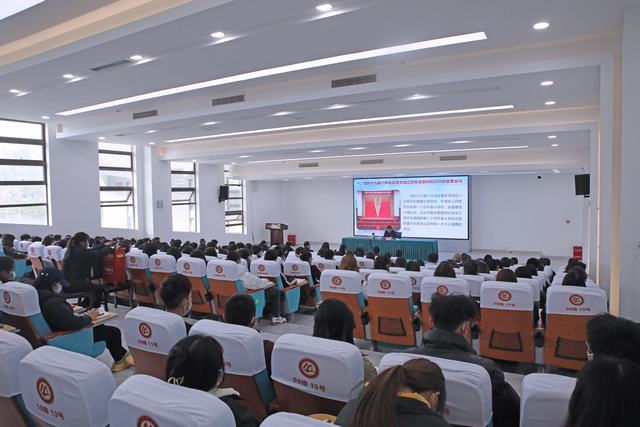 代贤军主要从深刻认识总结党的十九届六中全会通过《历史决议》的重要意义、党的百年奋斗重大成就和历史经验的重大意义、党的百年奋斗的初心使命和重大成就、中国特色社会主义新时代、党百年奋斗的历史意义和历史经验,走好新的长征路五个方面展开,最后巧妙地结合眉山本地、学校和学生实际情况分析贯彻落实党的十九届六中全会精神的途径,号召青年学生找准方向、树立志向、做好规划、练就本领、自强不息,即刻扬帆启航,积极投身于建设成都都市圈高质量发展新兴城市。