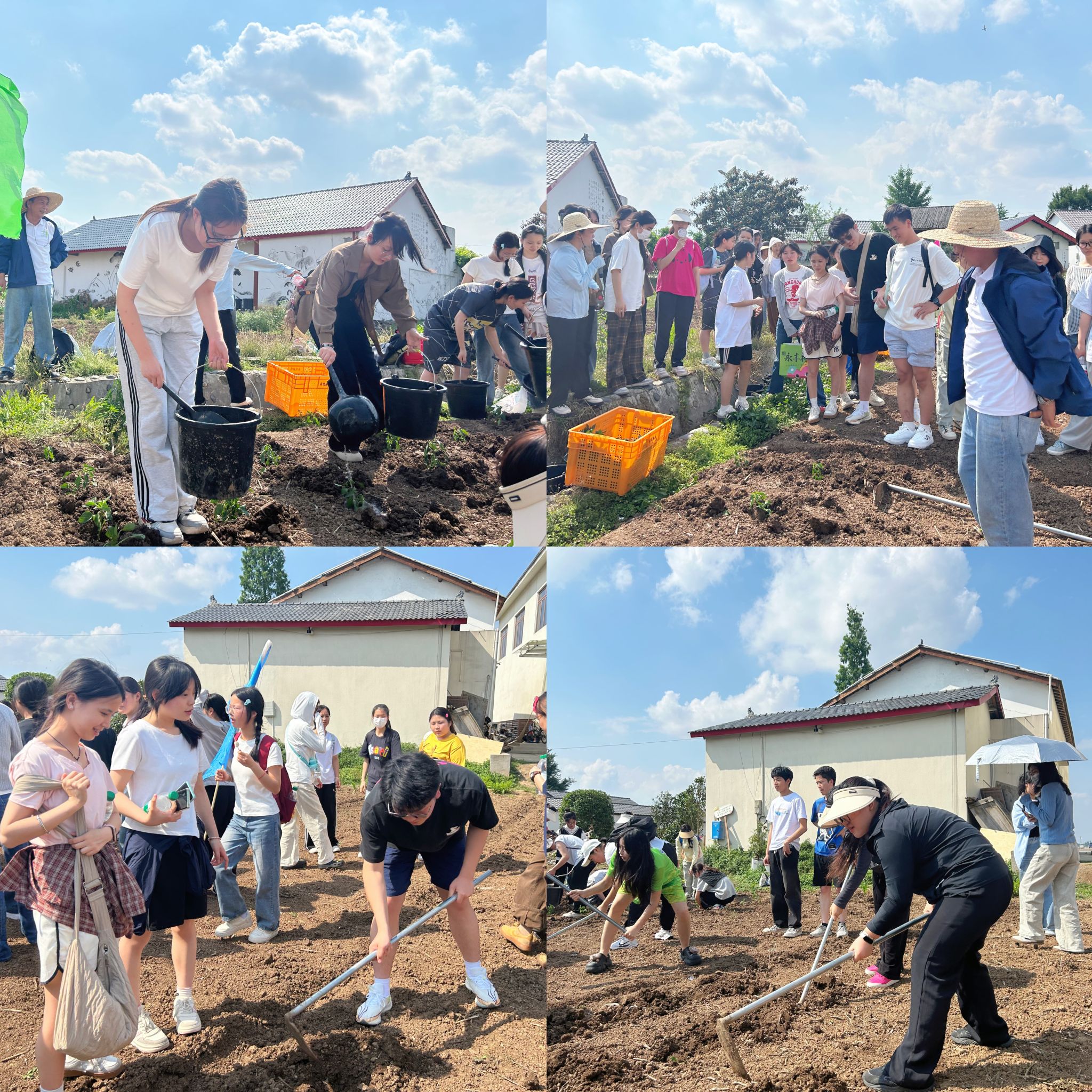 耕种体验环节,基地农耕人员先为同学们详细讲解锄头、铁锹等农具的操作规范和注意事项,示范了种植辣椒的方法步骤。随后,同学们分组行动,在教学实验田里深度翻耕,松土、挖坑、种秧、压平、浇水……通过躬身劳动体验劳动最光荣、劳动最崇高、劳动最伟大、劳动最美丽的内涵。