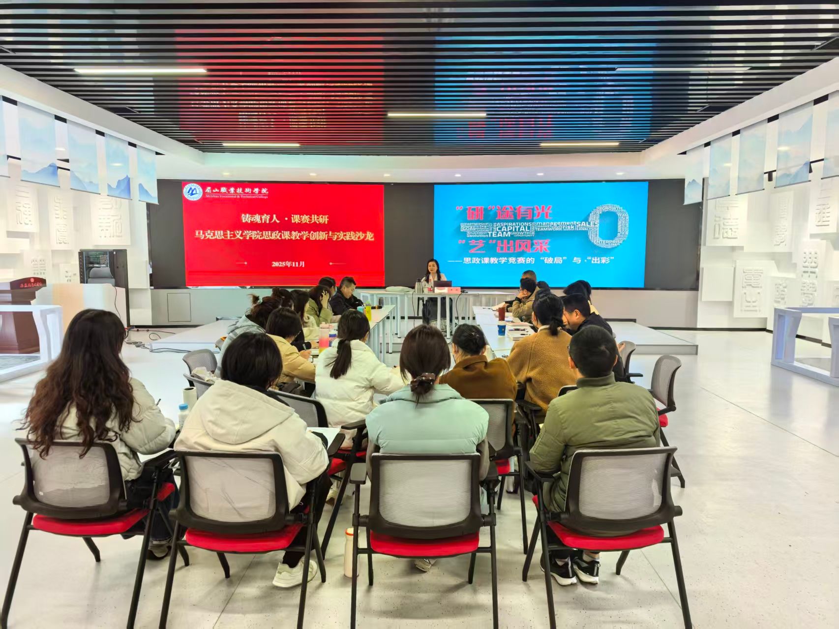 为深入贯彻落实习近平总书记对学校思政课建设作出的重要指示精神,推动思政课改革创新,11月19日,马克思主义学院在虚拟仿真基地举办赋能提质沙龙第三期。本次沙龙聚焦“新时代思政课课赛互促”,特邀乐山职业技术学院马克思主义学院主持行政工作副院长、省级党员教育师资库讲师、教育部全国首届高校思政课教学展示活动二等奖得主刘倩主讲。
