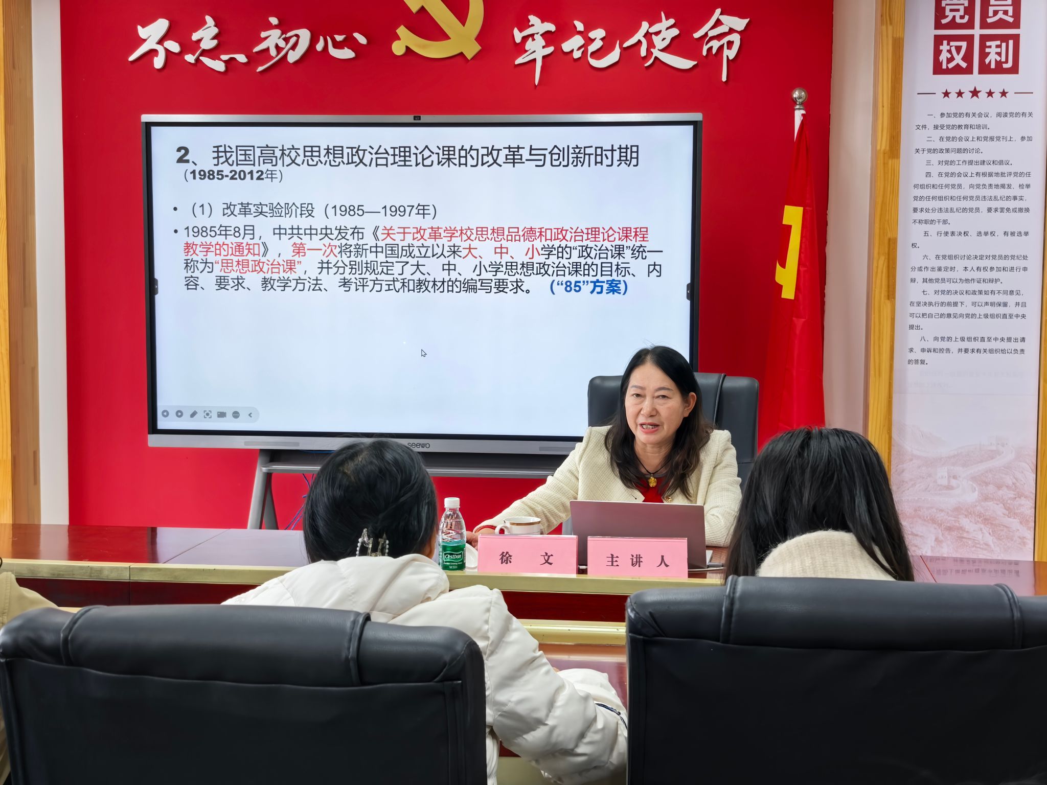 为深入贯彻落实习近平总书记对学校思政课建设作出的重要指示精神,推动思政课改革创新,11月21日,马克思主义学院在第七教学楼303室举办赋能提质沙龙第四期。本次沙龙聚焦“思政教师素养提升”,特邀四川交通职业技术学院马克思主义学院三级教授、四川省高等学校思想政治理论课教学指导委员会“高职高专思想政治理论课”分教学指导委员会副主任委员徐文教授主讲。