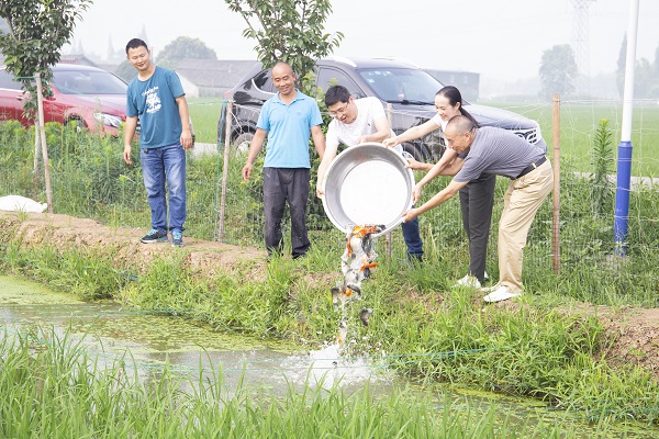 本次活动主要进行“稻-鸭-鱼”共生放养仪式,分为放养田鸭和放养田鱼两个过程。“稻-鸭-鱼”共生模式是2021年水稻“一优两高”生产竞赛活动的重要内容,是不断提高单位面积生产效益,破解粮食增产不增收产业瓶颈,提高粮农产业发展积极性的一种高效生态种养模式,由现农专业教师刘长江全程设计和指导。