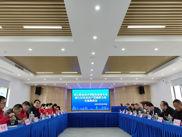 接着,一行人前往公义镇乡村振兴学院开展交流座谈。座谈会上,张望介绍了我校的基本情况,从“一优两高”水稻技术推广、基层农技人员提能培训出发,详述了我校为助推乡村振兴、服务地方经济所做的贡献,并表示,愿意和乡村振兴学院一起合作,让眉山、彭山在全国乡村振兴中扩大影响力,建的更好。