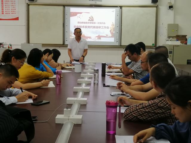 9月5日,农业技术系党总支召开党代会代表选举工作动员大会,部署代表选举工作。会议由党总支书记赵建聪主持,全体党员参加了会议。