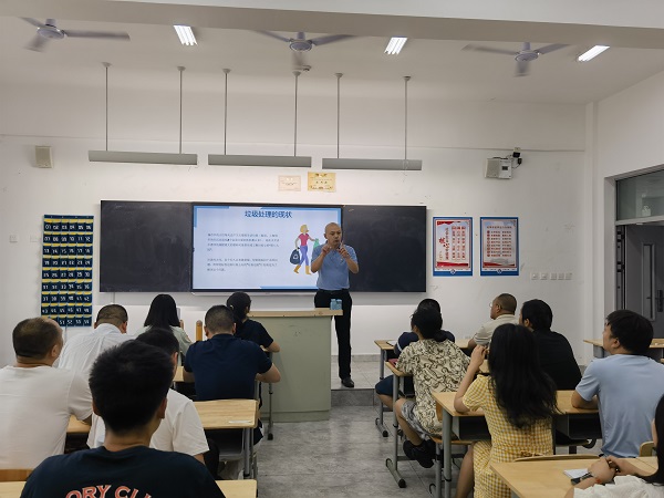 7月3日,农业技术系党总支在6308组织全体党员开展“垃圾分类,党员先行”主题党日活动。