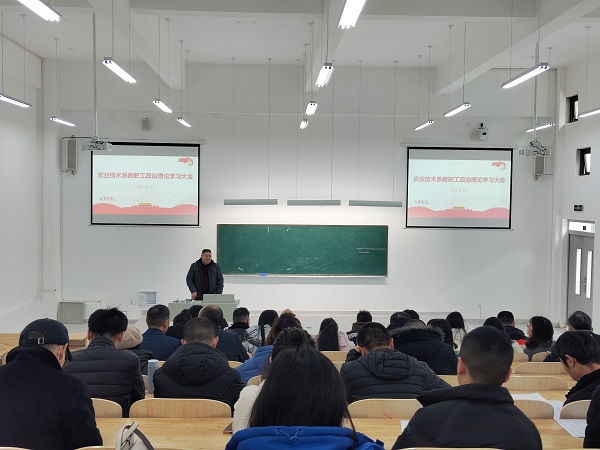 2023年02月14日,农业技术系在6113召开了教职工政治理论学习大会,会议由农业技术系副主任杨俊主持。