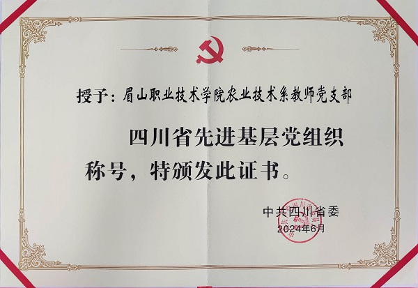 在庆祝中国共产党成立103周年之际,进一步激励全省各级党组织和广大党员奋勇争先、建功立业,奋力谱写中国式现代化四川新篇章,省委决定表彰一批四川省优秀共产党员、优秀党务工作者和先进基层党组织。其中,我校农业技术系教师党支部获评四川省“先进基层党组织”。