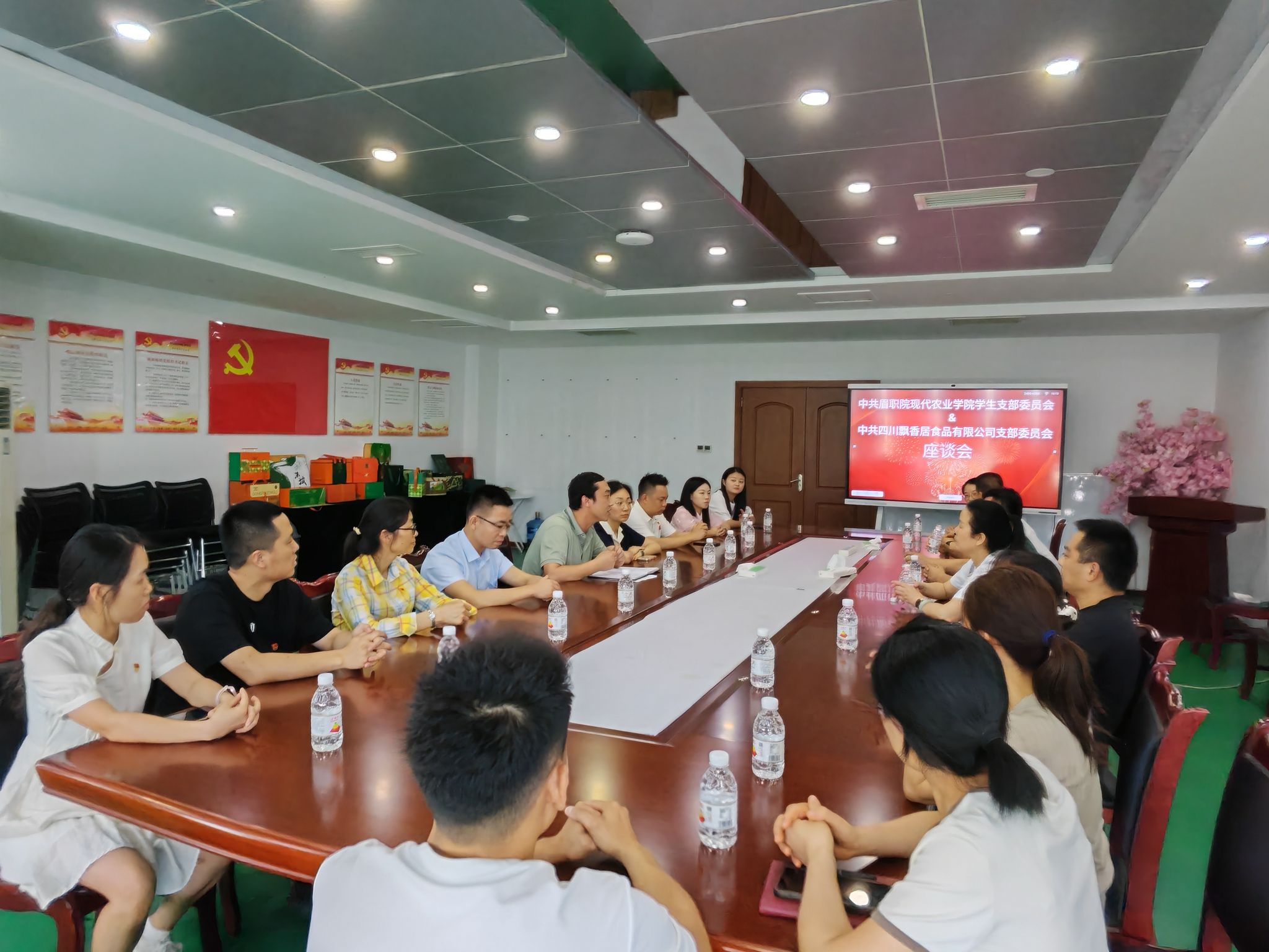 5月28日,现代农业学院学生党支部与四川飘香居食品有限公司党支部在四川飘香居食品有限公司党支部会议室开展党建联建活动。现代农业学院学生党支部全体党员、农产品加工与质量检测专业专任教师、四川飘香居食品有限公司党支部全体党员参加。