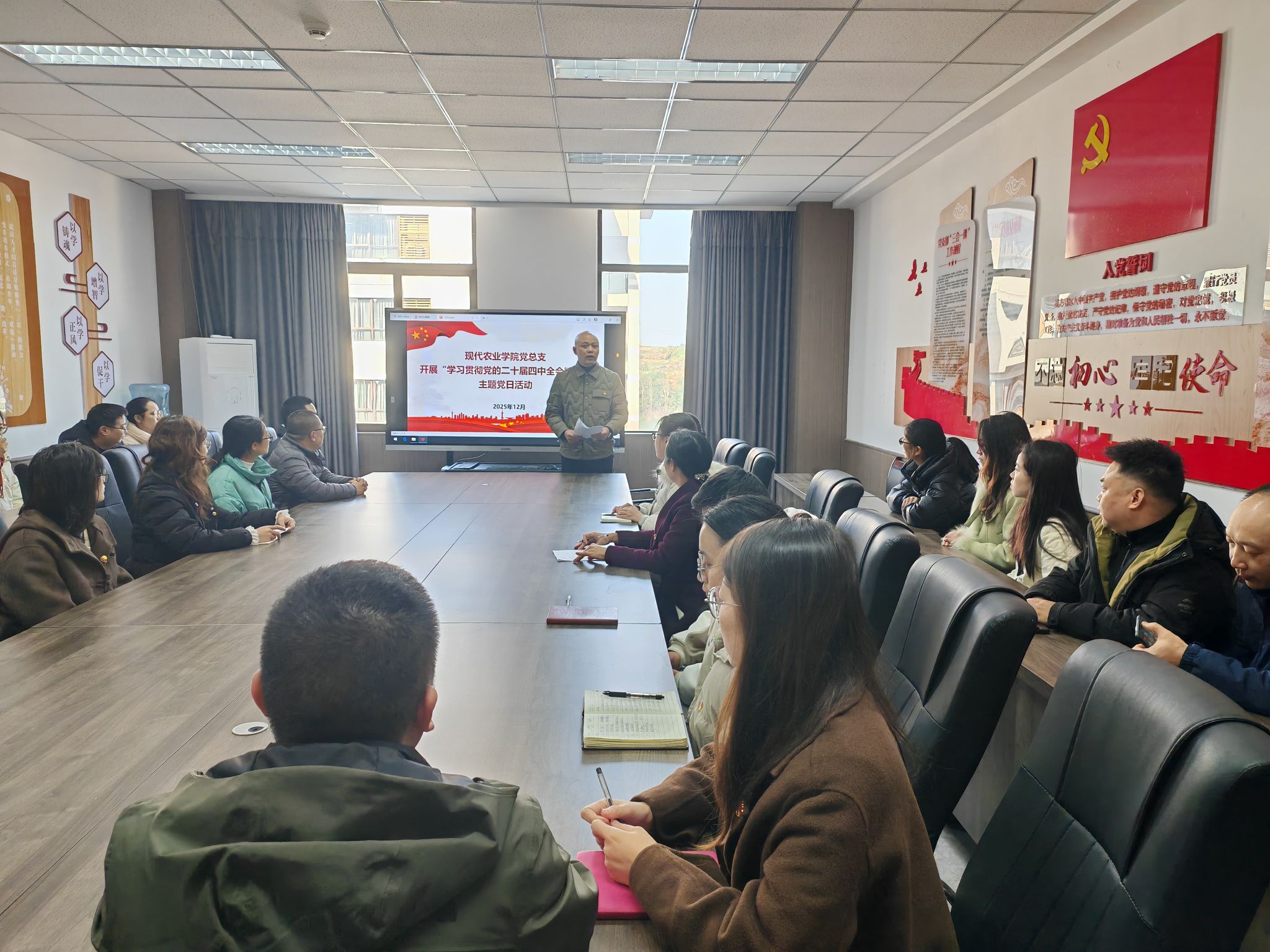 为深入学习贯彻党的二十届四中全会精神,切实把党员思想和行动统一到党中央决策部署上来,推动事业高质量发展,12月24日,现代农业学院党总支开展“学习贯彻党的二十届四中全会精神”主题党日活动,学院全体党员参加。