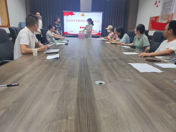 2023年6月15日,农业技术系教师党支部在党员活动室召开了党员大会,讨论预备党员的接收问题,会议由支部书记杨加琼主持。