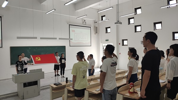 系副主任杨俊带领全体党员面向党旗,进行了新党员入党宣誓和老党员重温入党誓词的活动,每一位党员都接受了一次心灵的洗礼,坚定了立场信念,激励了党员爱党、信党、跟党走的理想信念。随后,全体党员集中观看了红色电影《古田军号》。