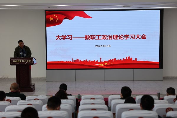 5月18日,农业技术系党总支在招生就业中心二楼会议室召开“奋进新征程、建功新时代”大学习大实践大提升活动之教职工政治理论学习大会。会议由农业技术系副主任杨俊主持。
