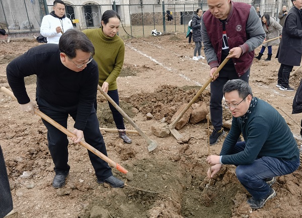 活动中,徐井万带领大家种植蜂糖李树、五月脆、胭脂脆桃,大家满怀热情,干劲十足,翻土、放苗、扶正、填土,配合默契,繁忙有序,在党员们的分工合作下,一棵棵树苗在现代种植基地安了新家。