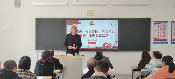 11月17日,农业技术系党总支开展“学史明志,知史爱国,不忘初心,砥砺奋进”主题党日活动,活动由系党总支书记杜宗洪主持。