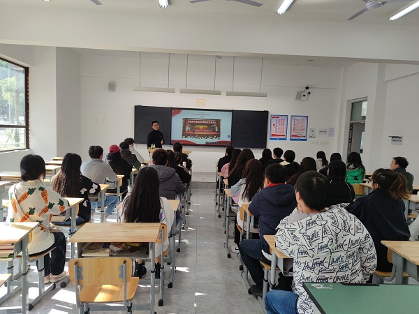 11月24日下午,农业技术系学生党支部组织纪检委员朱建以“学习眉山市第五次党代会精神”为题在6108讲授专题党课,支部党员、发展对象和入党积极分子参加。