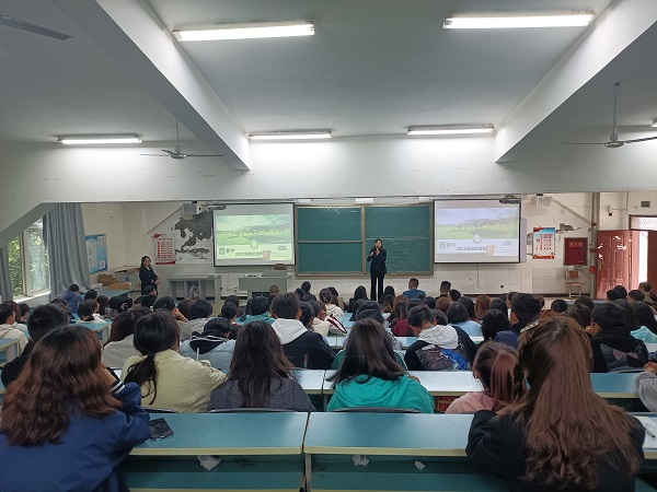 农业技术系食品与化工教研室负责人陈婷婷,专任教师张凯,辅导员章雨竹,杨宇,20级、21级食品加工班和食品检测班学生参加宣讲会。