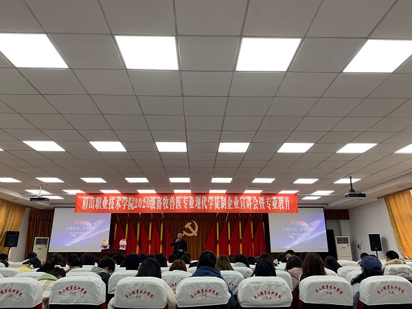 11月25日,农业技术系在图书馆学术报告厅开展2020级畜牧兽医专业现代学徒制企业宣讲会暨专业教育。