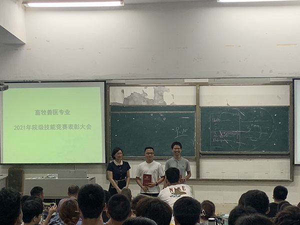 会议还对校级新城疫抗体学生技能大赛获奖学生进行了颁奖。