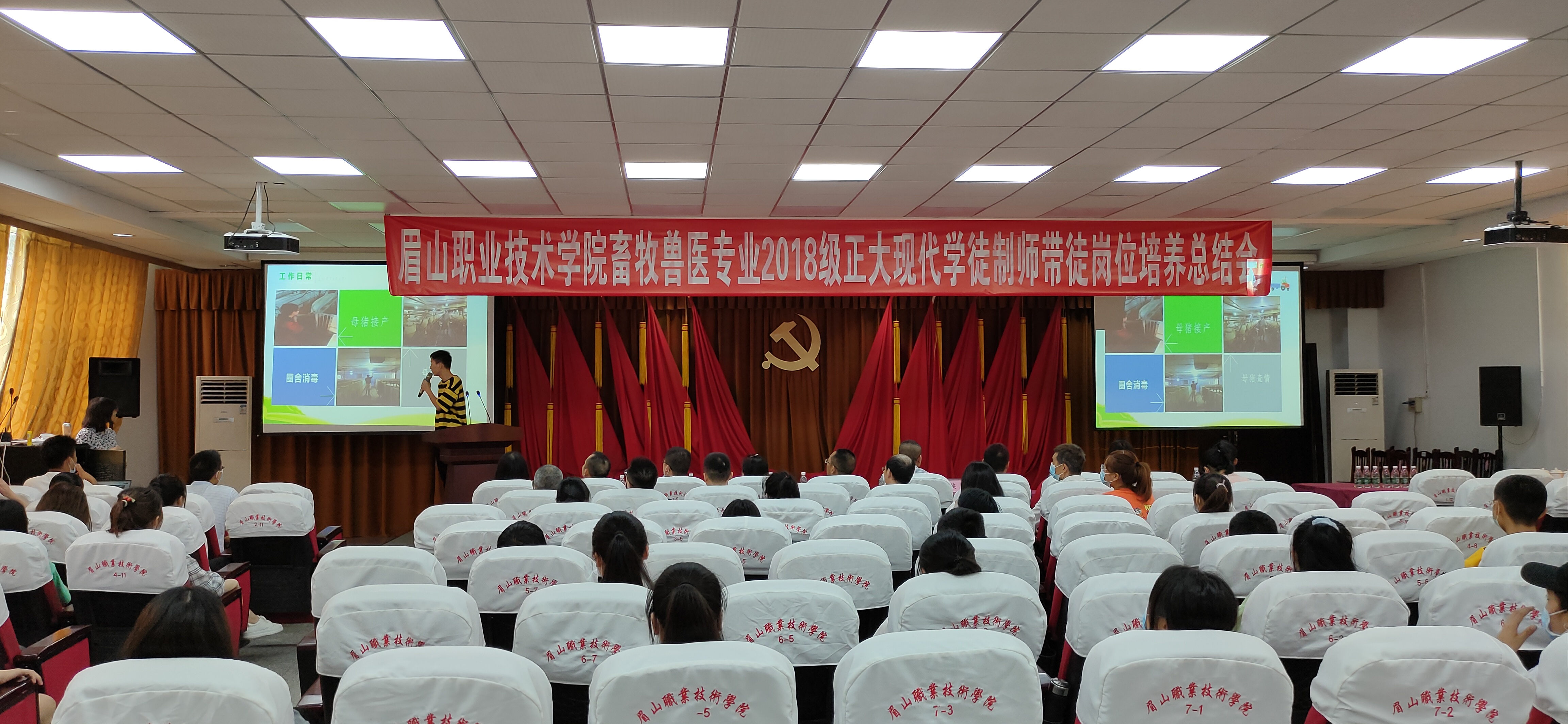 6月18日,畜牧兽医专业2018级学徒制师带徒岗位培训总结会在学术报告厅召开,农业技术系党总支书记赵建聪,正大集团、德康集团负责人代表、畜牧兽医专业全体老师出席会议,畜牧兽医专业全体同学参加会议。